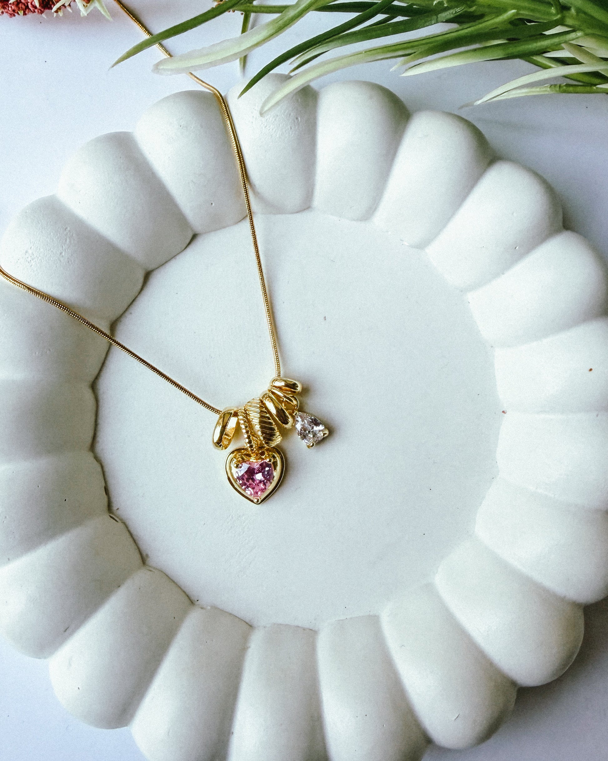 Pink heart with drop charm necklace