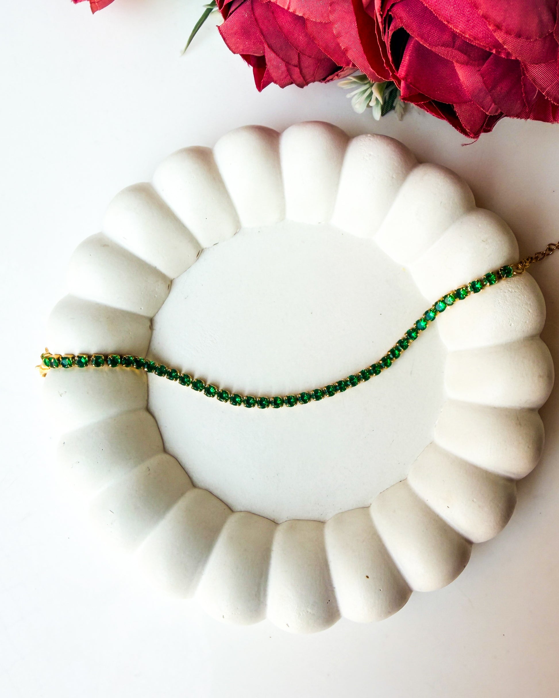 Green round stone tennis bracelet