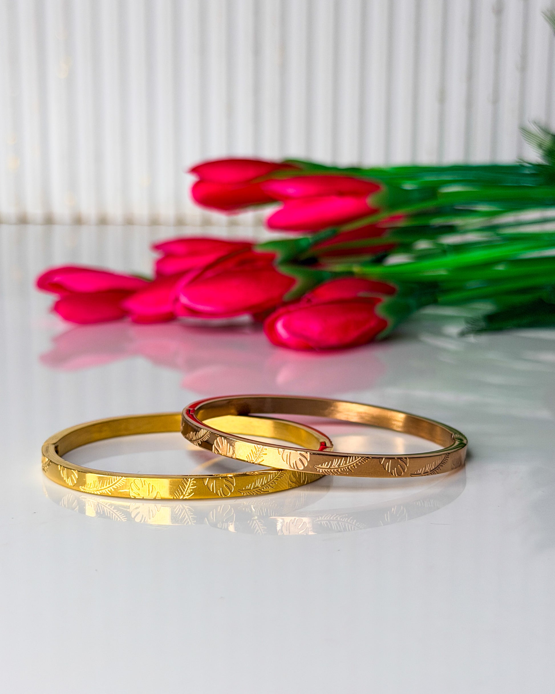 Leaf detailed thin wrist / baby size bracelet