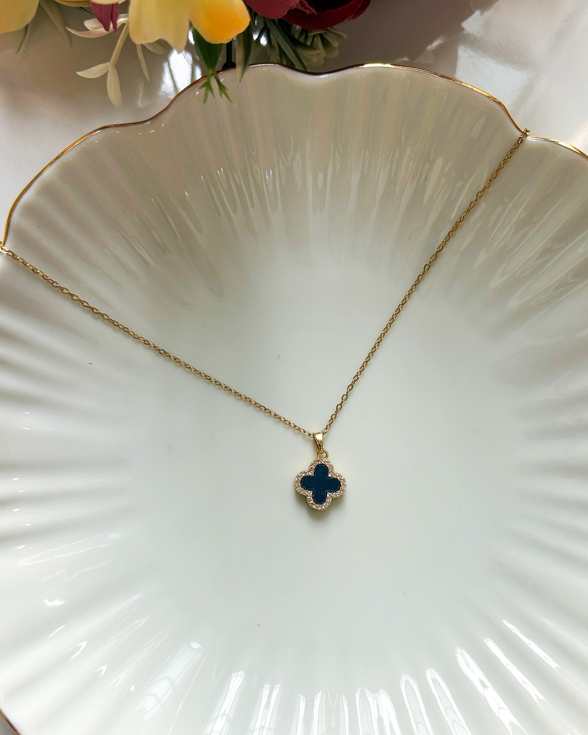 Studded reversible clover necklace ( black and white)