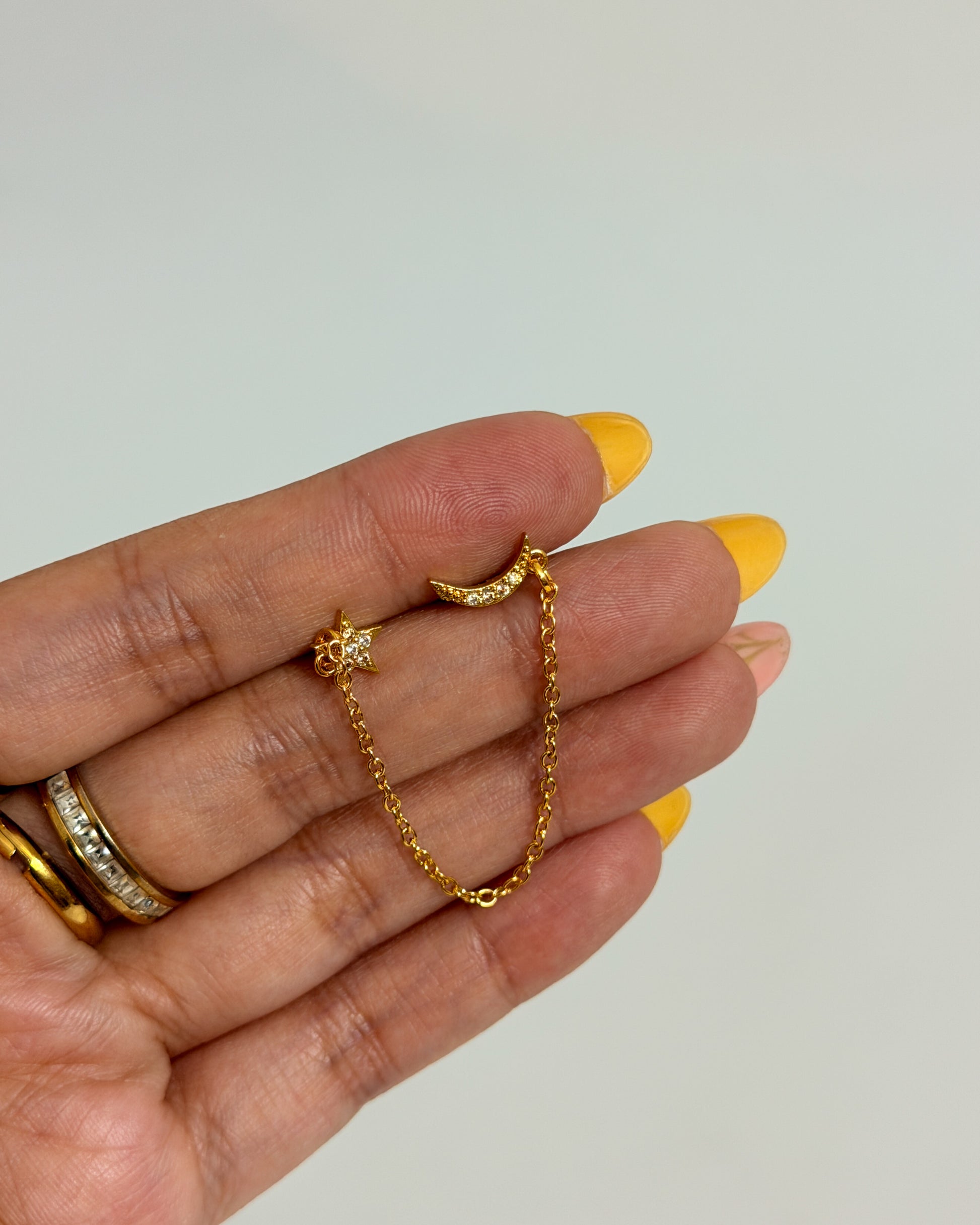 Sun moon link chain ball back studs